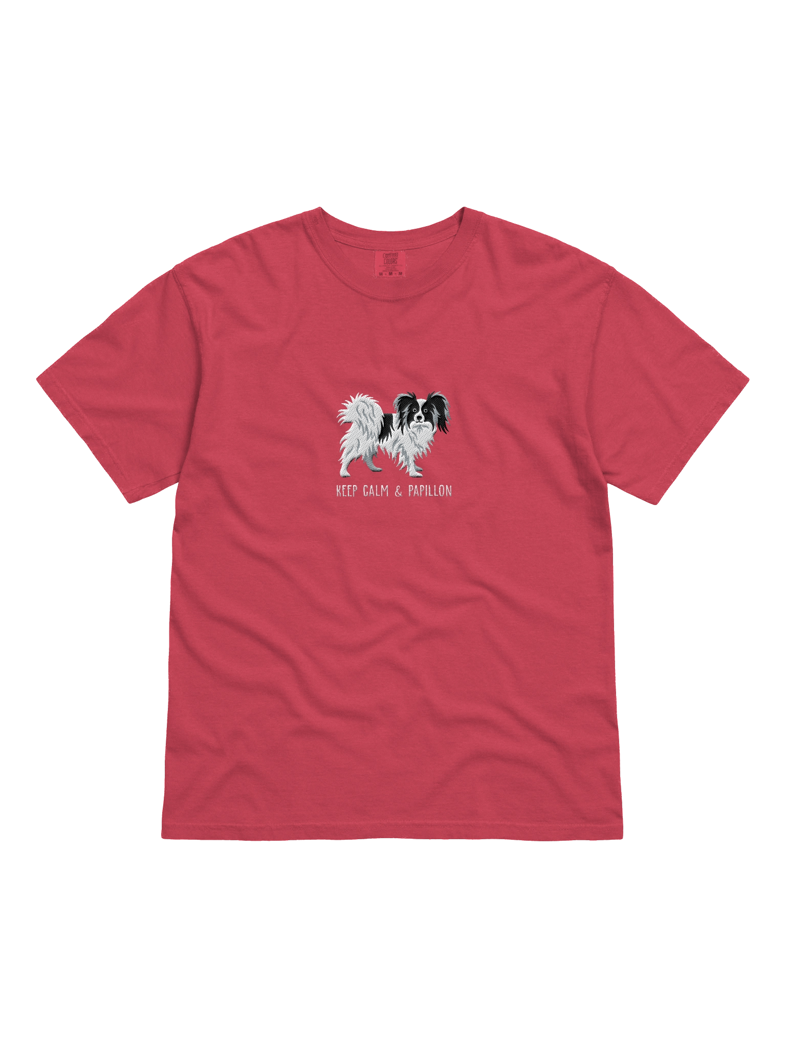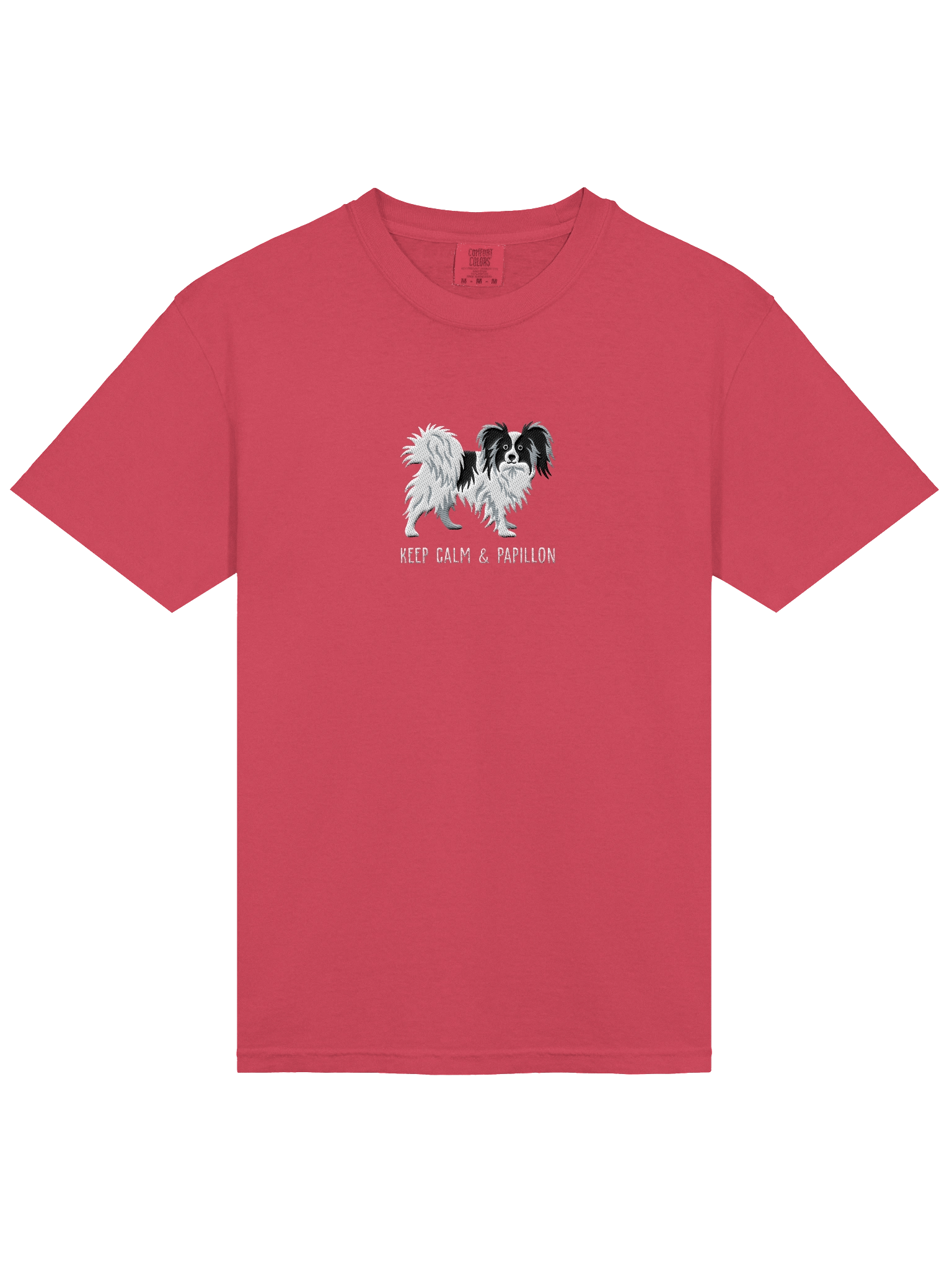 Stay stylish and whimsical with this embroidered “Keep Calm & Papillon” t-shirt, perfect for fans of the elegant and butterfly-eared Papillon breed. Featuring high-quality stitching and a clever twist on the classic phrase "Keep Calm and Carry On," this dog-themed tee is ideal for proud Papillon owners and small breed enthusiasts alike. Whether you're heading to the dog park, a casual outing, or looking for the perfect gift, this shirt adds charm and personality to any outfit.